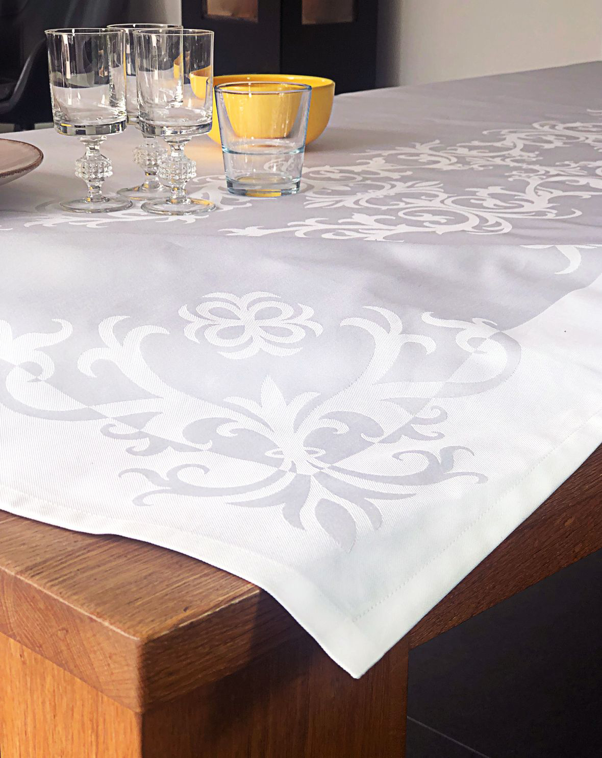 Material und Pflege "Damast-Tischdecke Prinzipal, weiß, mit ornamentalem Muster 140x360"