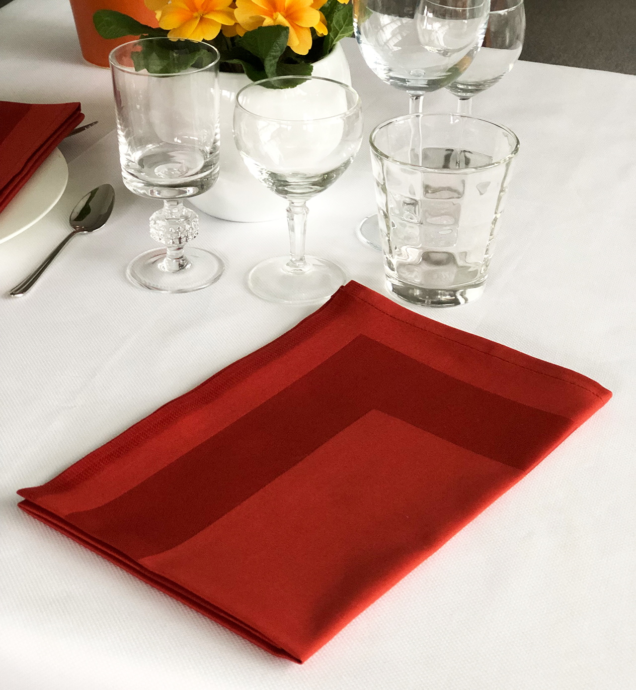 Material und Pflege "6 Stoffservietten, Padua, ziegelrot, mit Atlaskante, 50x50"