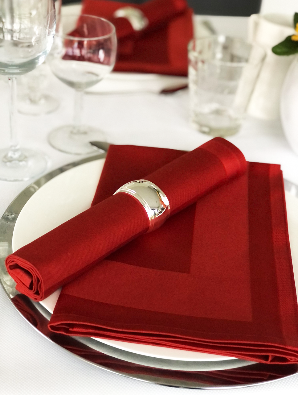 Ein Set aus 6 feinen Stoffservietten in ziegelrot, die auf jedem Tisch ein echter Blickfang sind. Die Stoffservietten Padua in ziegelrot besitzen einen umlaufenden Atlasstreifen, bestehen aus 100% Vollzwirn-Baumwolle und sind in der klassischen Dinnergröße 50x50cm im Sortiment. Hier können Sie eine frische farbige Note auf den Tisch zaubern!